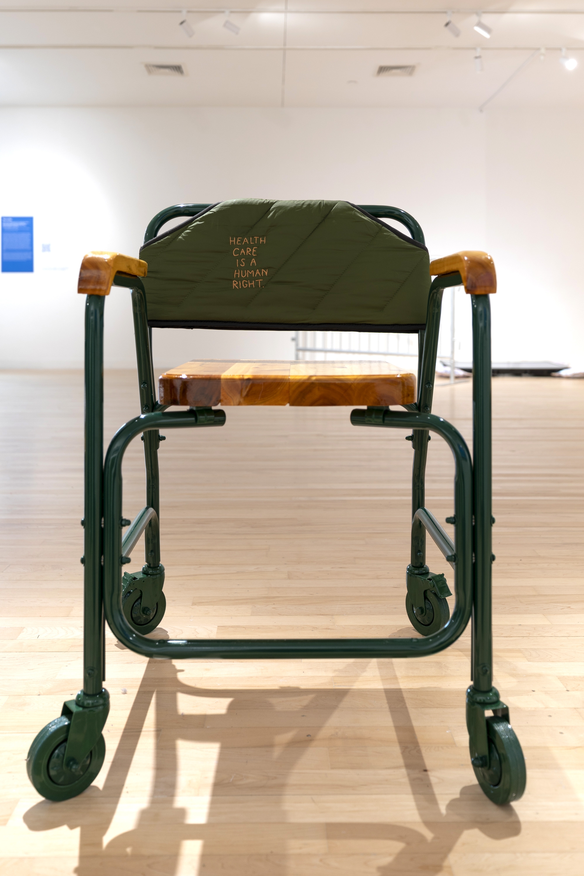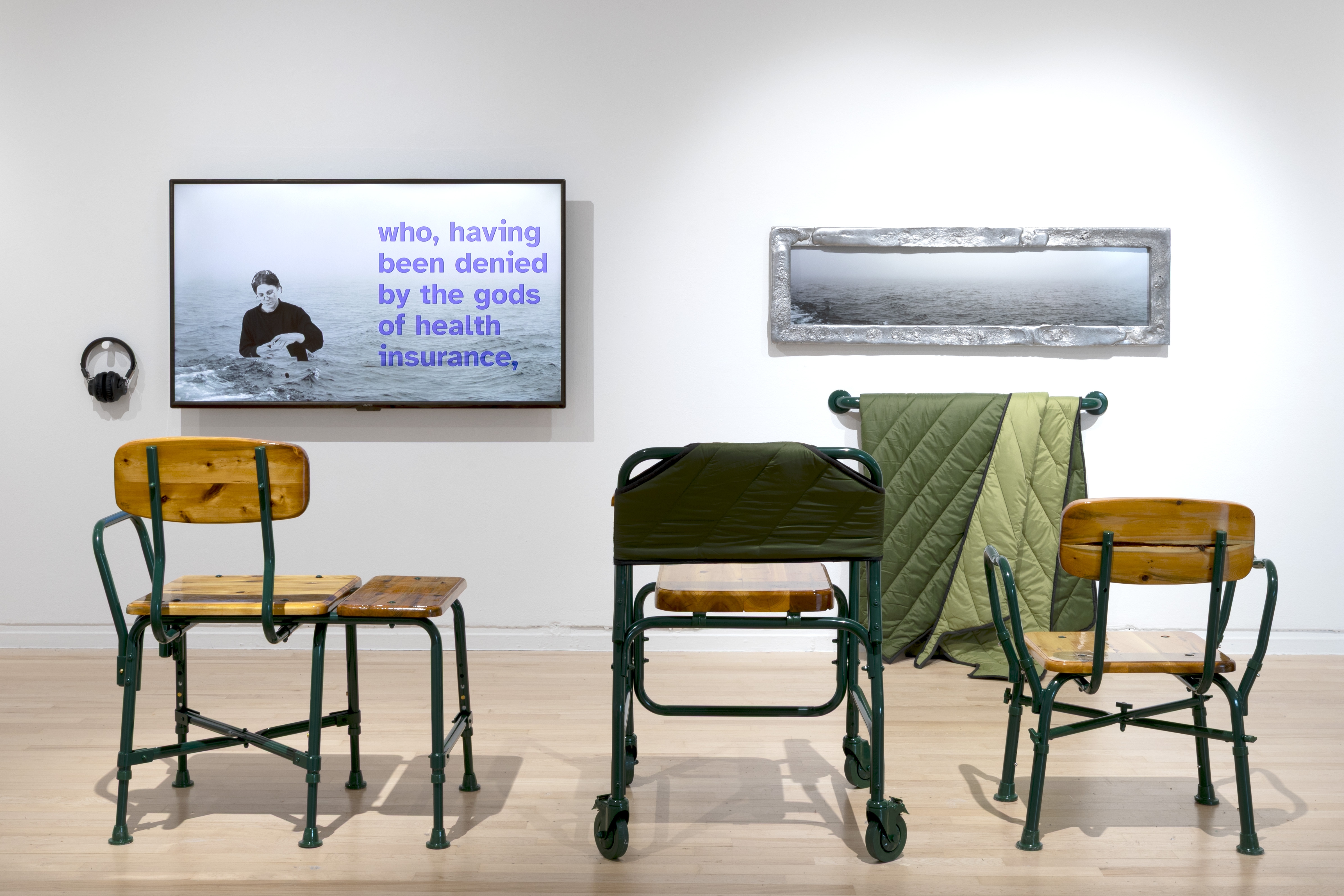Through a multidisciplinary practice, I examine policies within healthcare, technology, emergency planning, architecture, and other nameable systems which make public life both possible and impossible for disabled people. I consider disability broadly, as a lens to view power structures that affect us all. Central to my practice is a conceptual and physical embrace of lowness as a site of care and attention, critiquing what gets elevated and rejecting the pressure to be upright. My work is displayed in relation to my seated-perspective, inviting those who are “up there” to look diagonally across traditional hierarchies. Water serves as a recurring motif; it’s an environment of awe where our bodies move differently and get re-oriented. Water is the ultimate site of lowness, the place where lowness goes deep.