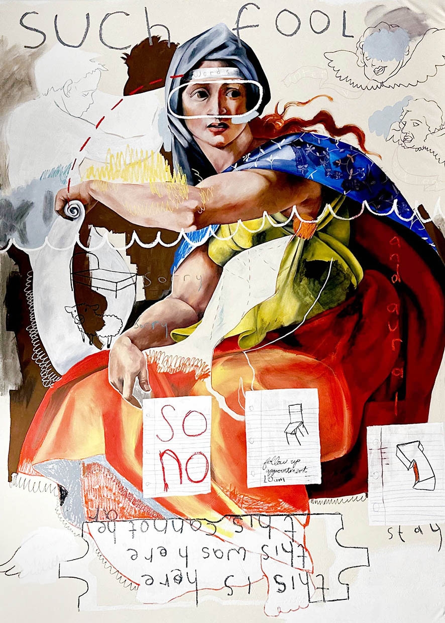 STATEMENT: Matt Bodett’s artwork treats madness as a cultural presence rather than a condition to be corrected. He works across painting, books, print, and performance, often by directly altering historical images, texts, and formats drawn from Western art history and psychiatric archives. His process involves overwriting, erasure, annotation, and reuse, placing contemporary mad experience into direct contact with inherited cultural authority. Through the Center for Mad Culture, this approach extends beyond the studio into exhibitions, publications, talks, and archives that foreground mad and disabled authorship. The work shows how memory is produced through material acts of revision, who controls those acts, and how mad knowledge persists when it is allowed to speak in its own terms.